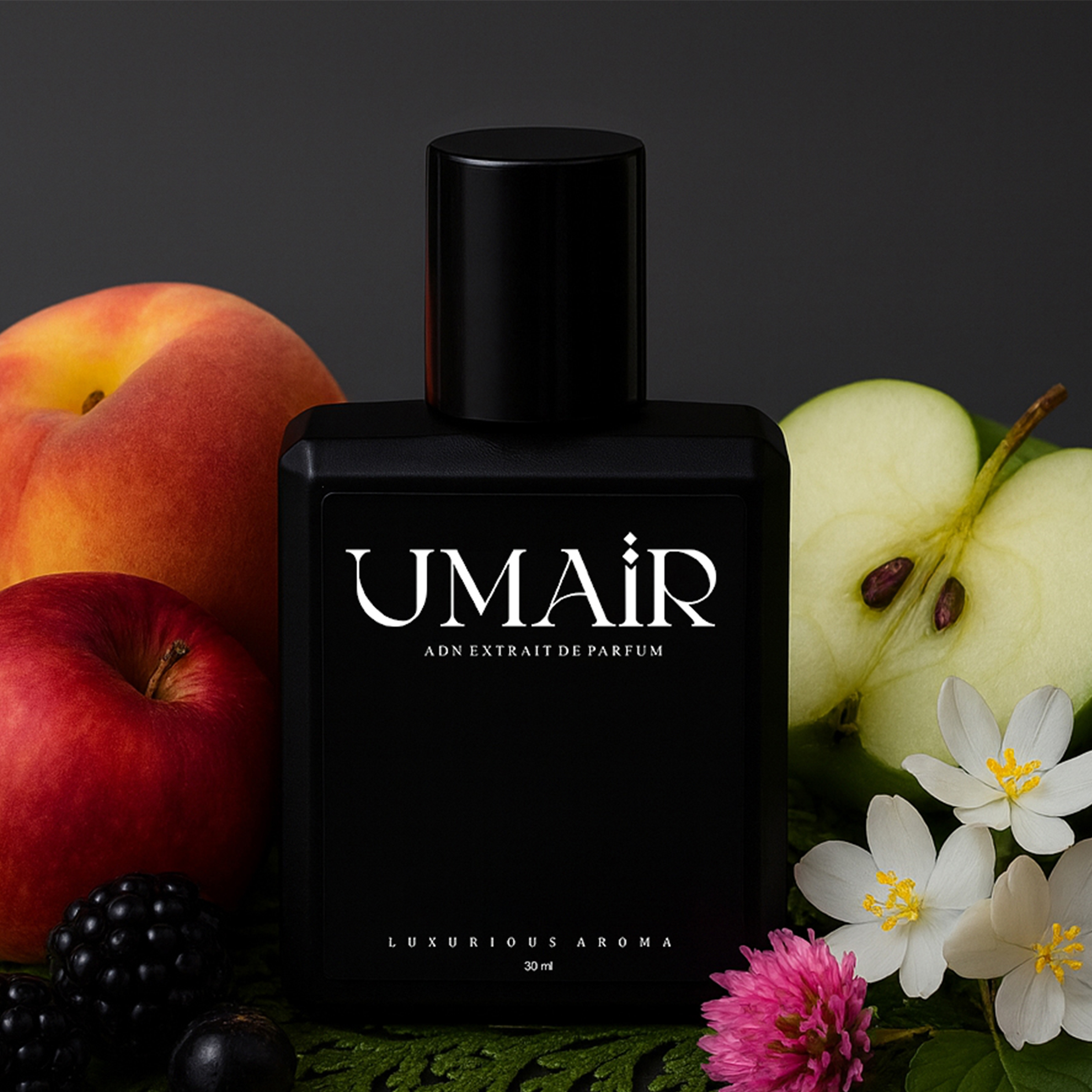 Umair ADN dengan sentuhan patchouli yang mendalam, keharuman jasmine yang mempesona, dan kesan musk yang mewah, parfum Umair ADN menggoda indera dan jiwa.